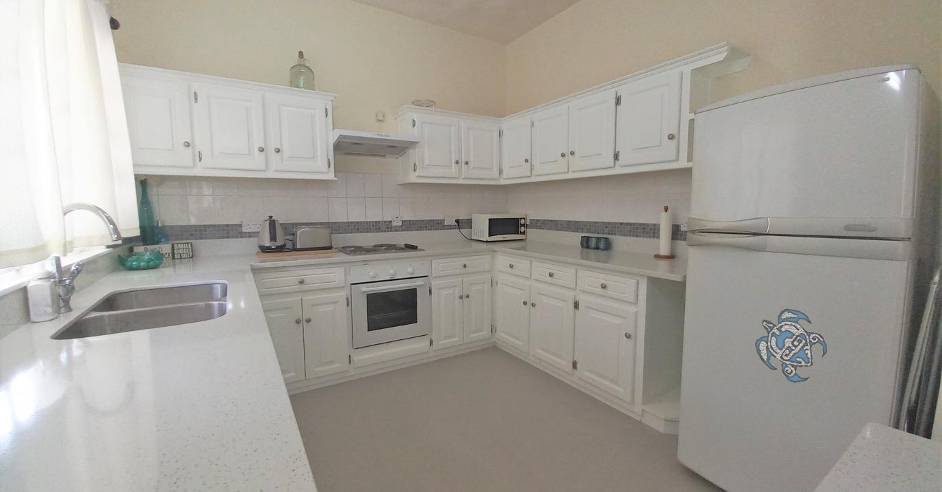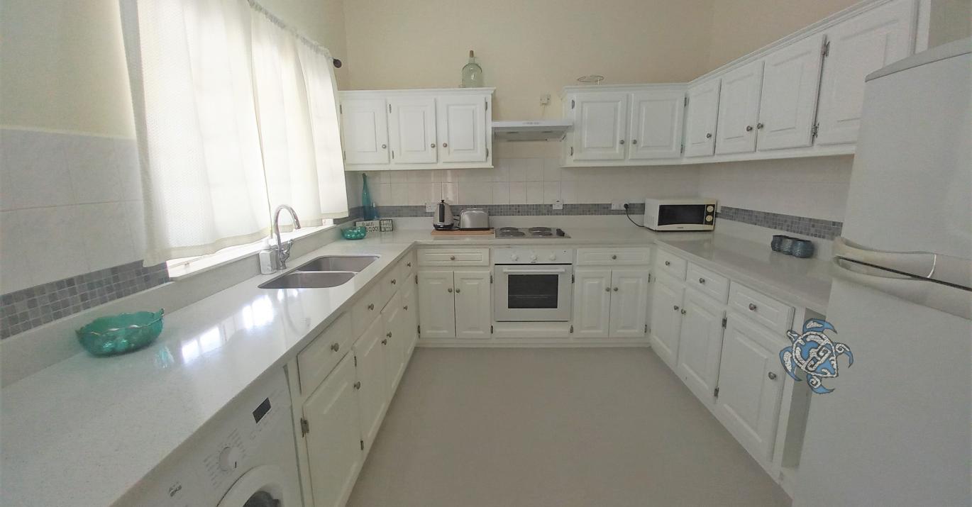 - Fully fitted kitchen with granite counter top, ample cupboard space, stove, fridge/freezer, microwave, breakfast bar.